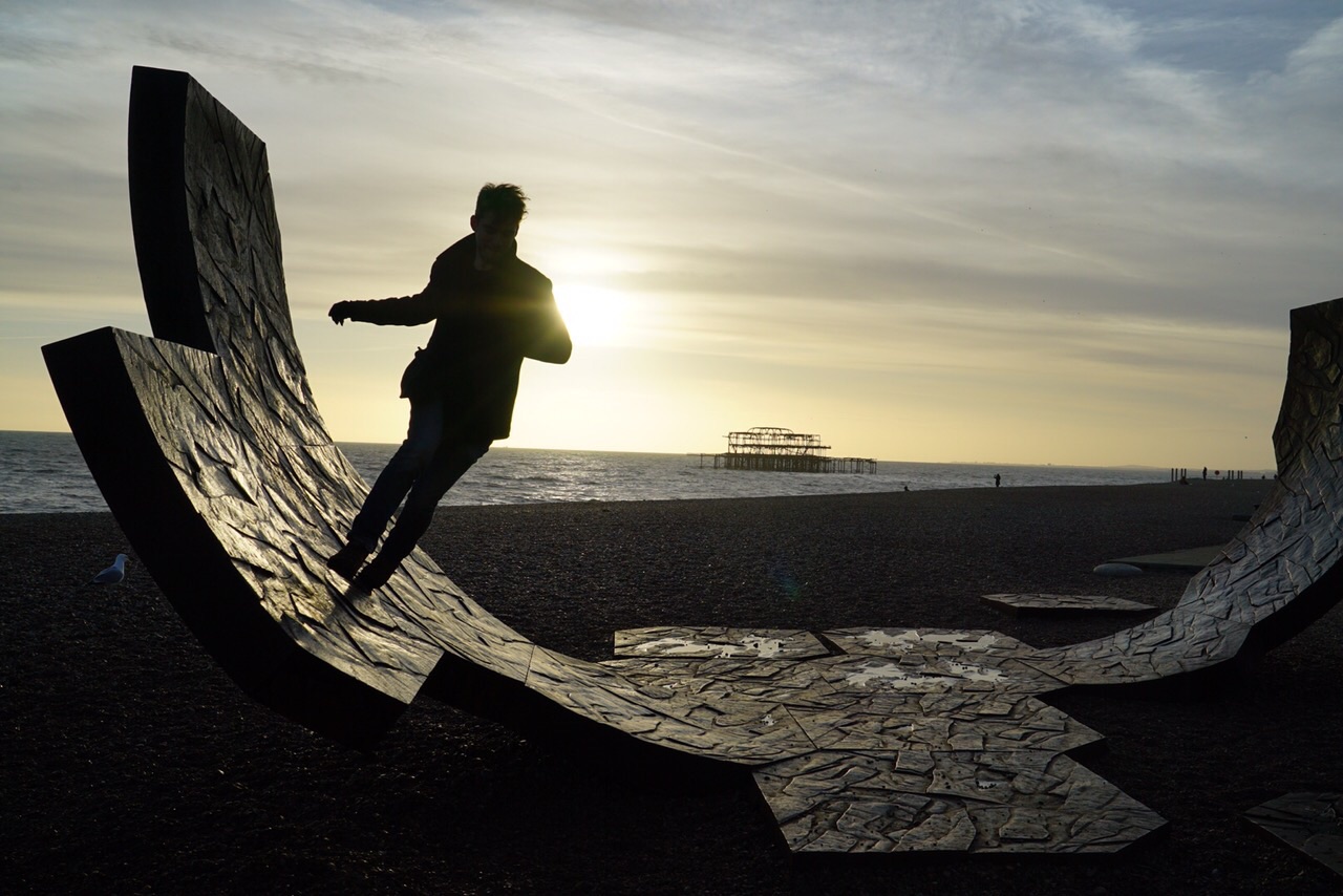Brighton beach at sunset with a daredevil runner in Brighton, United Kingdom – 2015